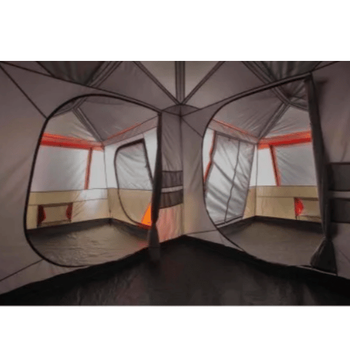 - 3 large rooms with two internal room dividers which give excellent privacy. Masses of floor space and large windows all round the tent give the Ozark Trail a spacious, roomy feel.